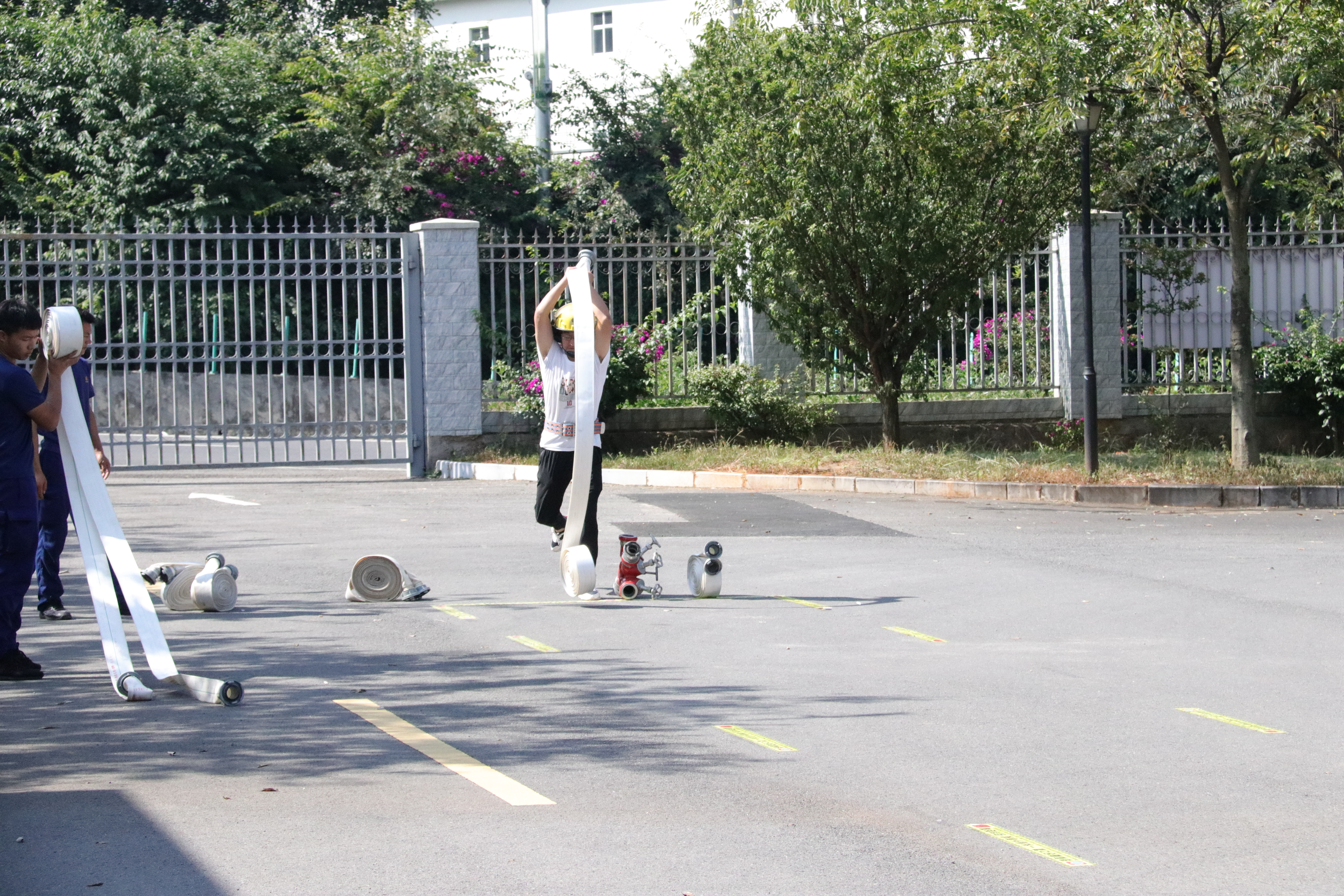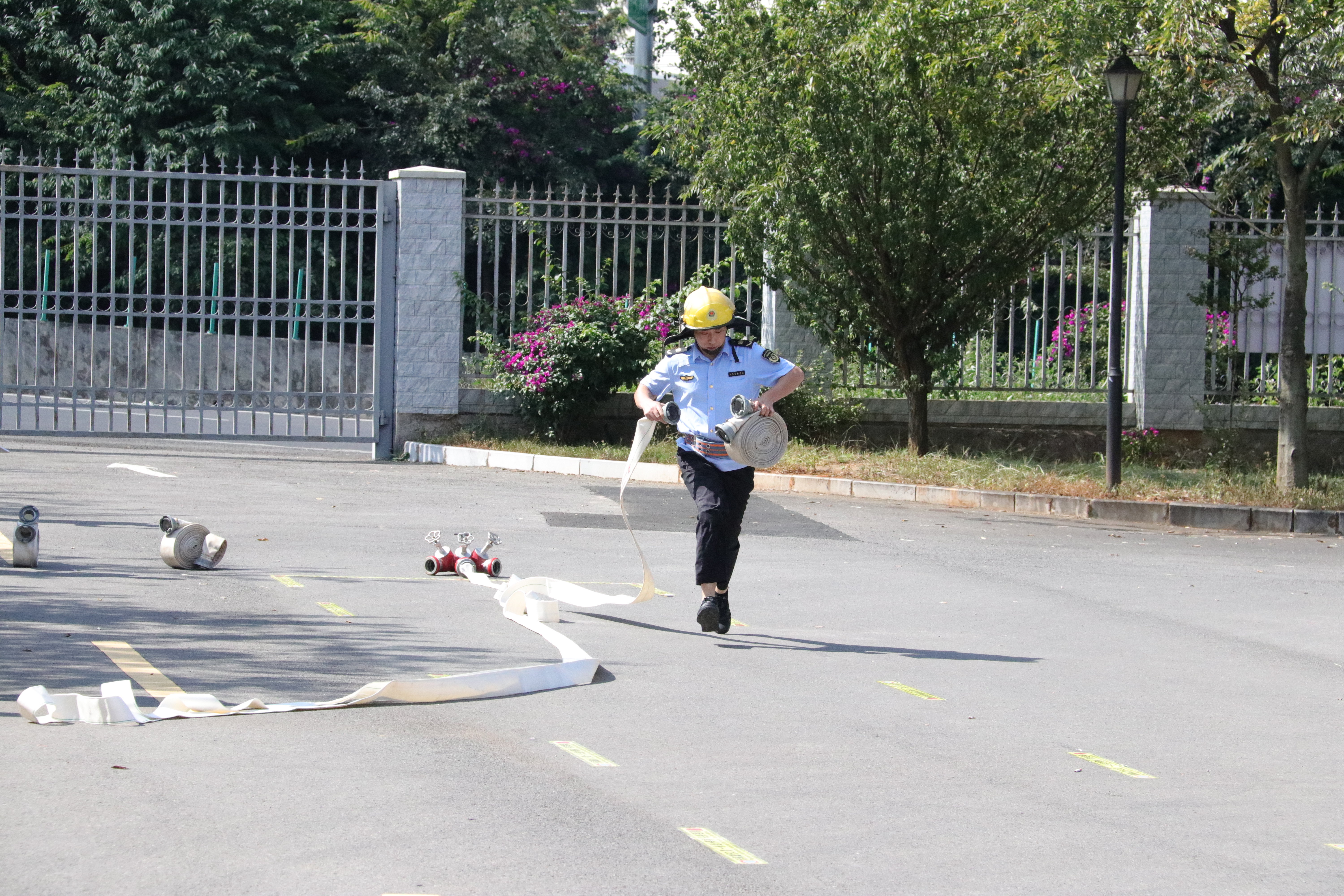 在一声“开始”口令后,参赛选手迅速向前,手持水带,甩开第一盘水带后,使用水带接头连接第二盘水带,在跑动中甩开第二盘水带,到达终点,接上水枪,冲出终点线,动作干净利落、一气呵成。