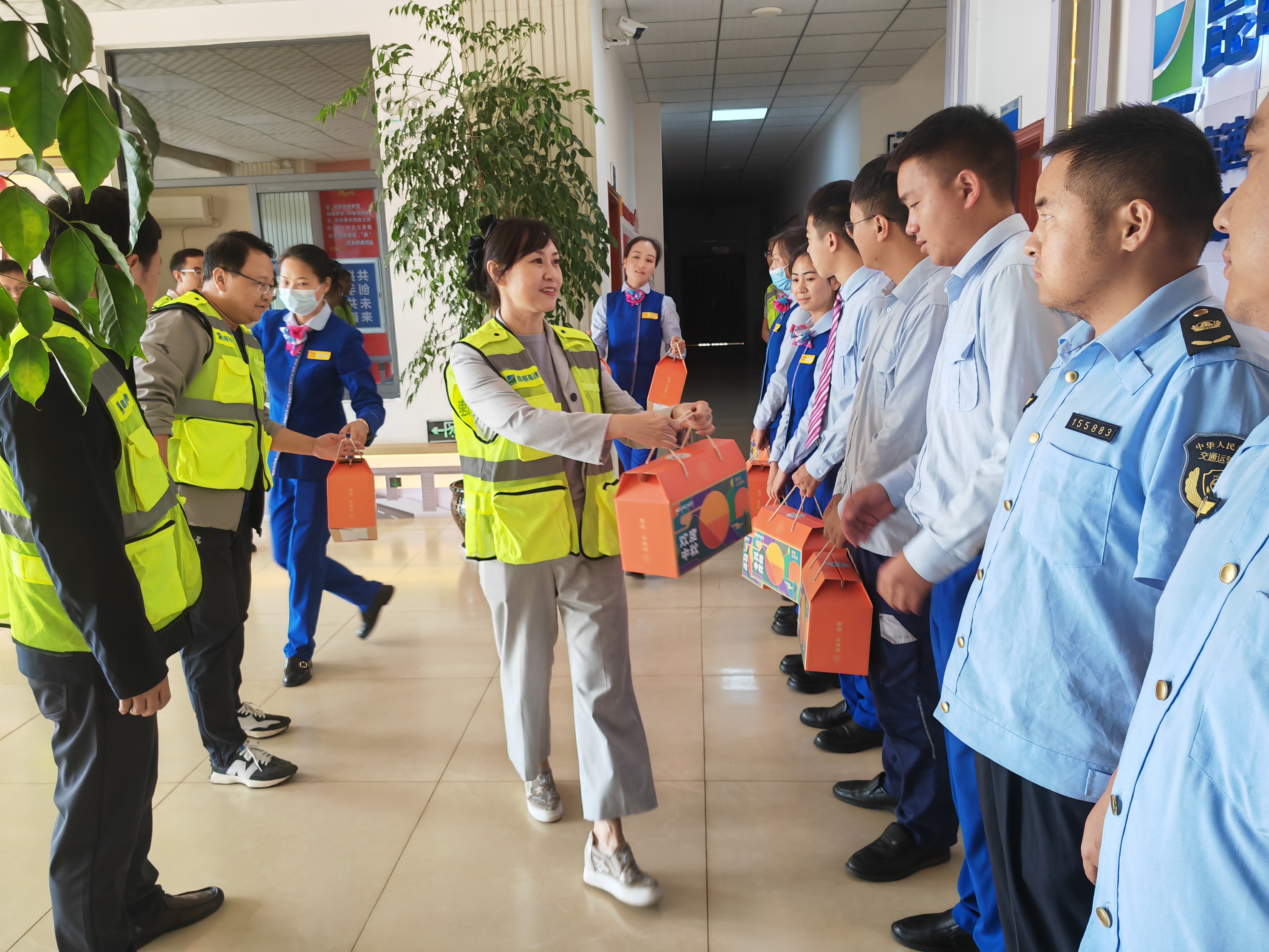 走站点送祝福。9月28日,公司领导和各子公司班子成员分组到运营高速公路的19个收费站点,向下属宜石公司、石泸公司、东南绕公司、元朔公司仍然坚守一线岗位的335名职工送去节日的祝福和党委的慰问把祝福送到一线岗亭里,把温暖送到大家心坎上,切实一线干部职工感受到党组织的关怀。