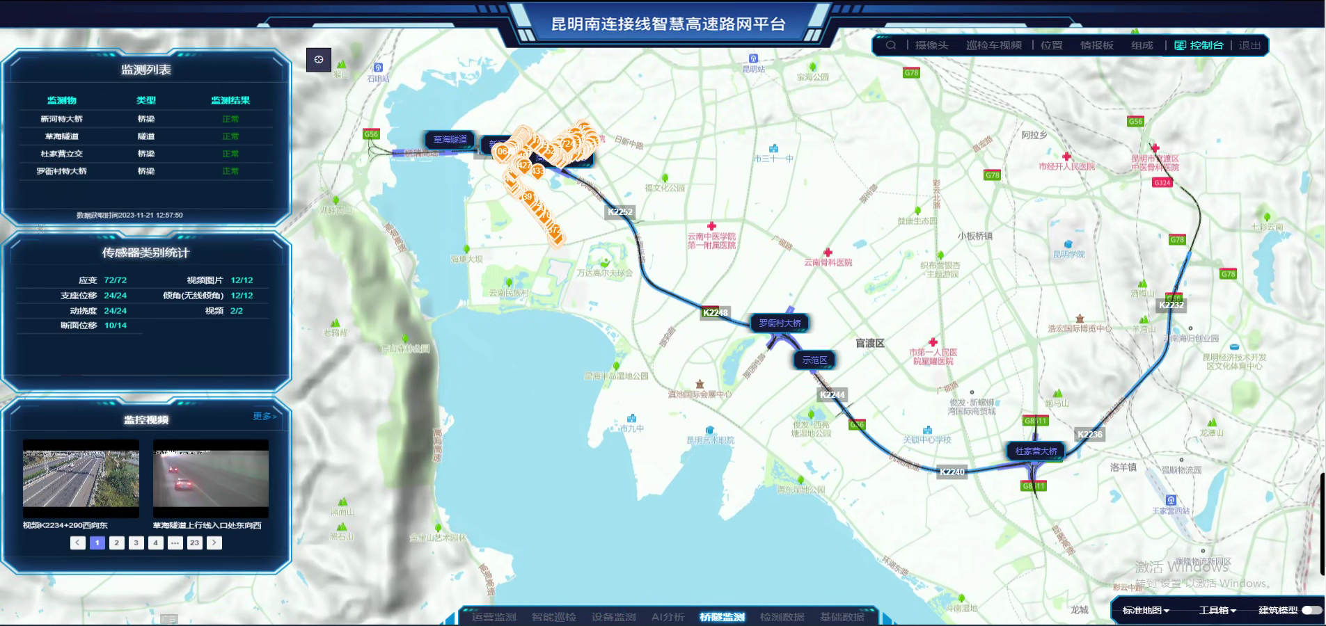 采用“智慧路网”平台对南连接线高速公路桥梁温度进行远程实时监测,加大对隧道、桥梁、弯道等重要路段巡查力度;加大监控巡查频次,加强与交警、路政的联勤联动,加强与相邻高速监控中心的沟通,利用沿线情报板做好安全提示,对收费站各车道积水及时进行清理;组建应急救援队伍,配备融雪剂、撒布机、除雪车、应急货车、巡检车、除雪铲等,时刻做好抢险保通、救援清障准备。