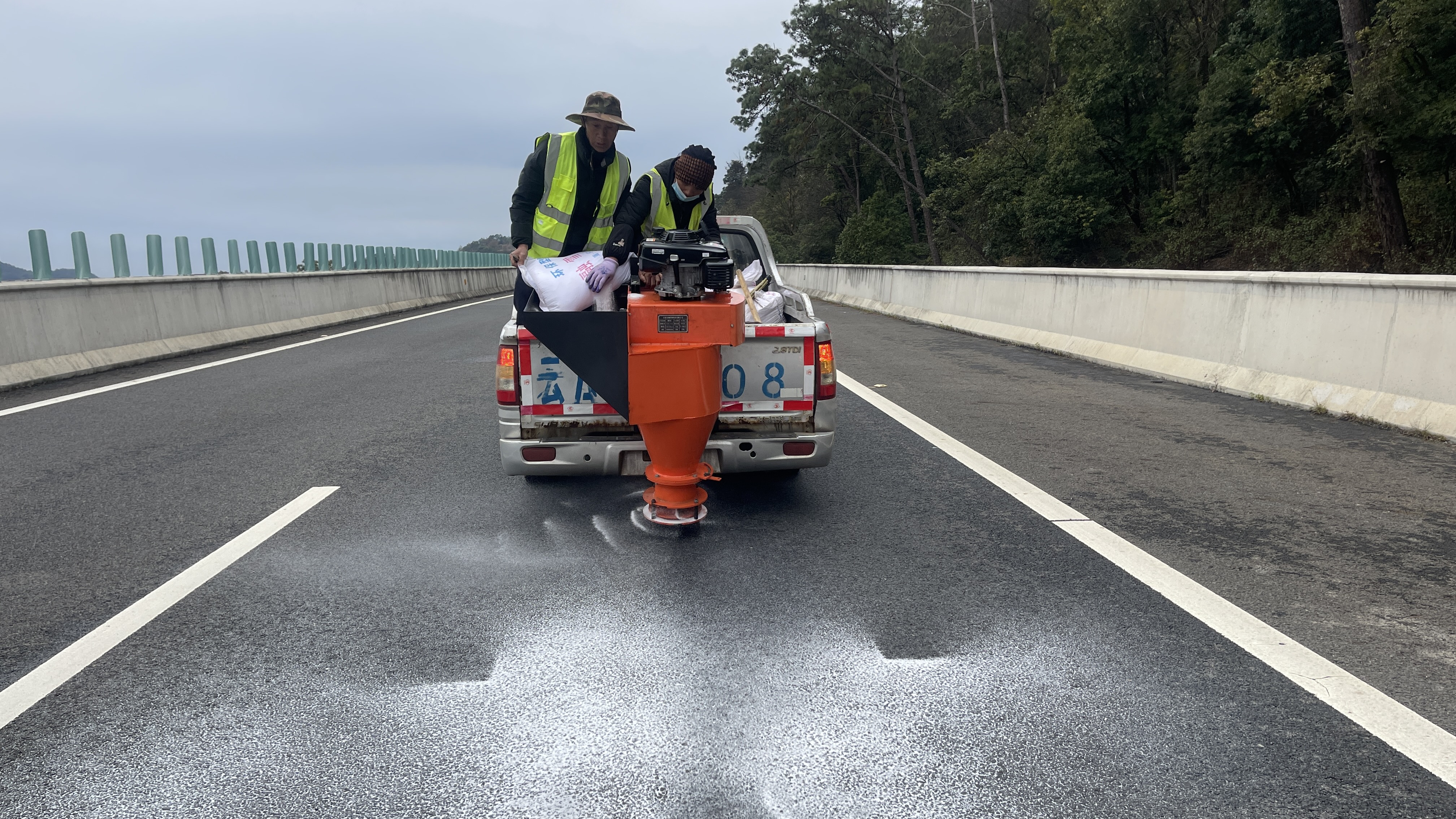 提前防控保通保畅:提前排查应急人员、物资、设备“三到位”;加大全线道路视频巡查力度,积极做好道路信息的发布;时刻关注道路天气,对宜石高速公路、石泸高速公路(昆明段)全线完成预防性融雪剂撒布;联合交警、路政、养护单位于凌晨2点-5点每小时进行一次夜间巡查;加强安全提醒,为过往司乘人员做好安全行车提醒。