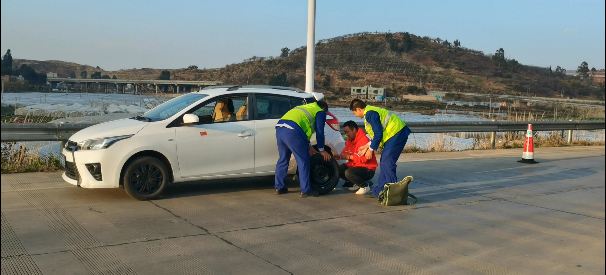帮助司乘人员换轮胎