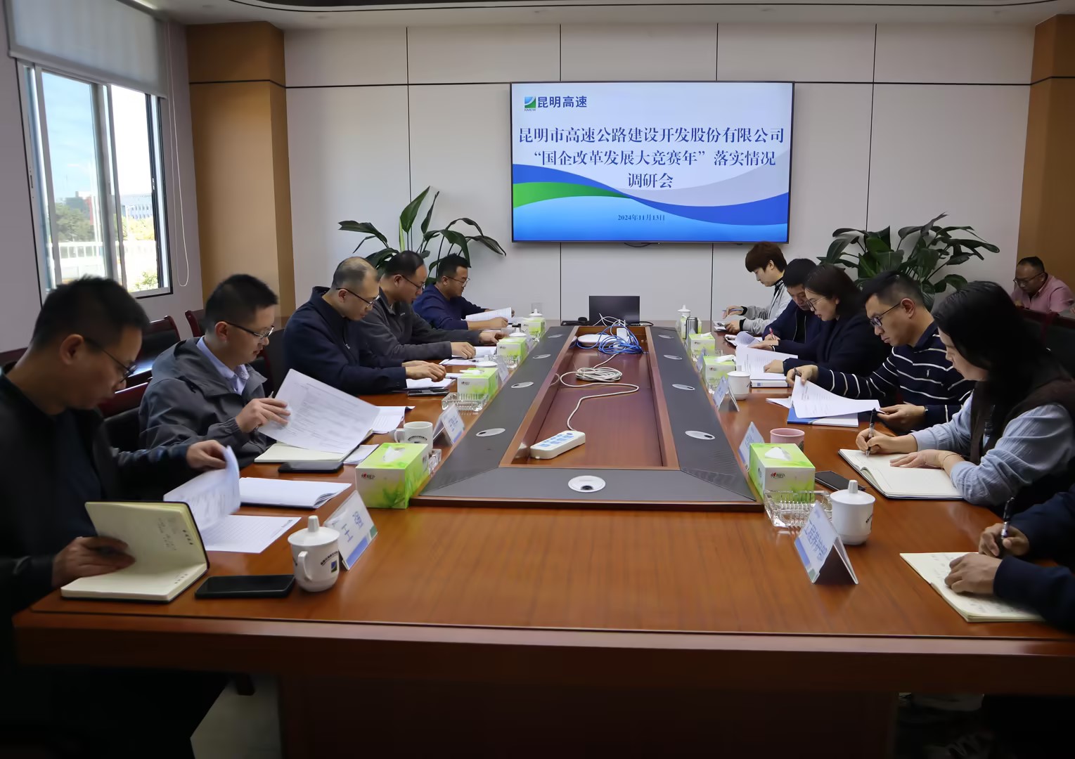 调研组听取元朔公司就“国企改革发展大竞赛年”十个专项竞赛工作、年度目标任务、往期调研工作要求落实情况、当前存在的问题以及下一步工作计划的详细汇报。