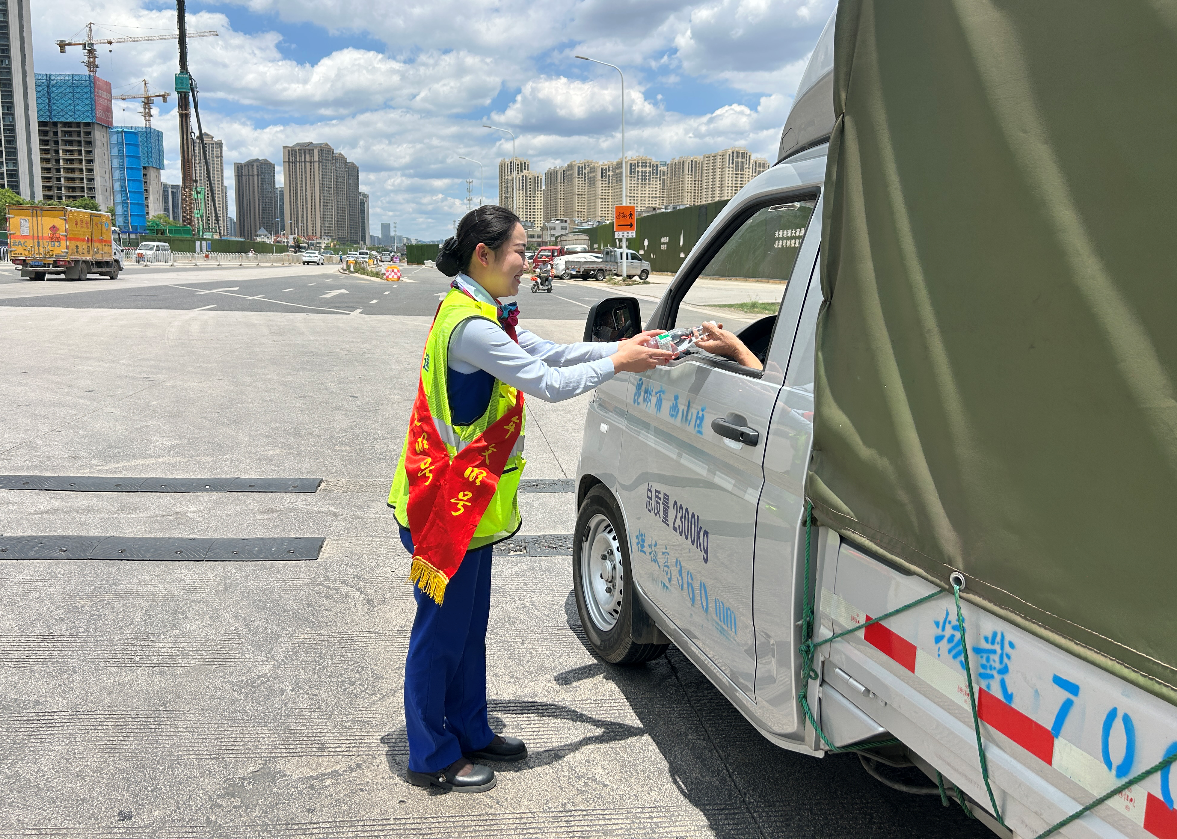 在做好防汛保畅工作的同时,各高速公路运营公司积极践行“以人民为中心”的服务理念,全力提升服务温度。在收费站设置“便民服务台”,为司乘人员免费提供应急药品、饮用水、简易维修工具等物资,累计服务群众180余人次;组织志愿者开展文明引导、指路答疑等志愿服务,耐心解答群众咨询,帮助解决实际困难;通过沿线情报板滚动播放“端午安康,雨天路滑,减速慢行”等温馨提示,营造温馨安全的出行环境。其中,昆明东南绕公司配合韵达物流公司在宜良北收费站开展“夏日送清凉沁人心,韵达关怀传真情”端午节慰问活动,收费站人员将饱含心意的粽子和清凉的矿泉水送到驾乘手中并送上节日问候:“端午节安康,祝您一路平安”,一口香甜可口的软粽子,一声温暖亲切的问候,传递了浓浓的端午祝福。