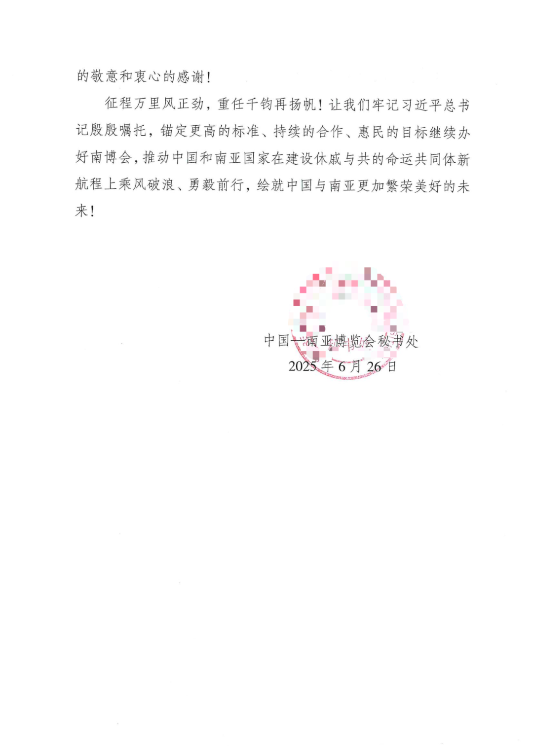 近日,304永利集团下属元朔公司收到南博会主办方感谢信。