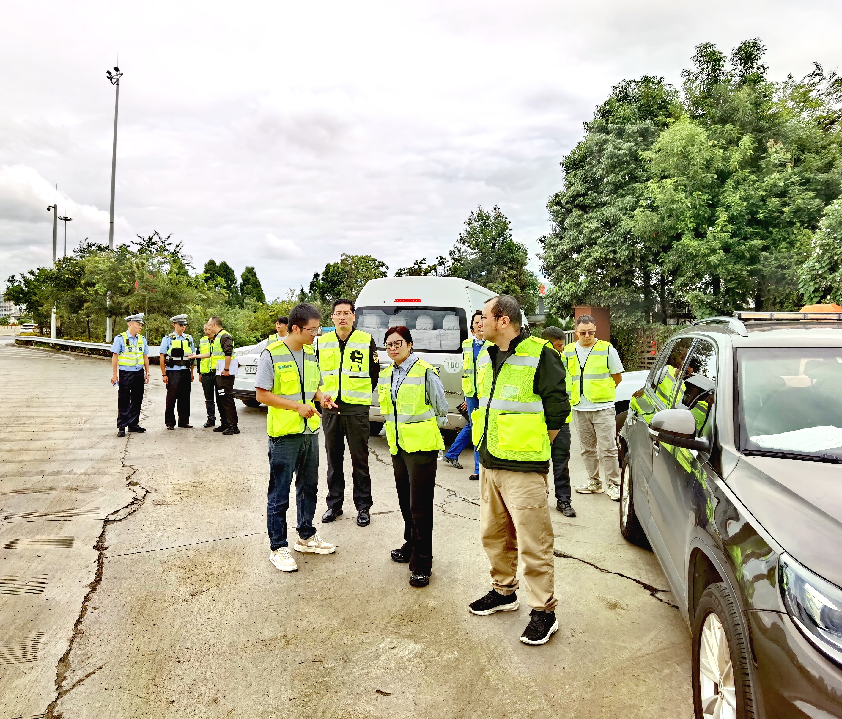 2025年9月24日,304永利集团下属元朔公司联合昆明市公安局交通管理支队十大队(以下简称“交警”)、昆明市交通运输综合行政执法支队西山大队(以下简称“路政”),对昆明南连接线高速公路开展国庆、中秋节前安全专项检查。