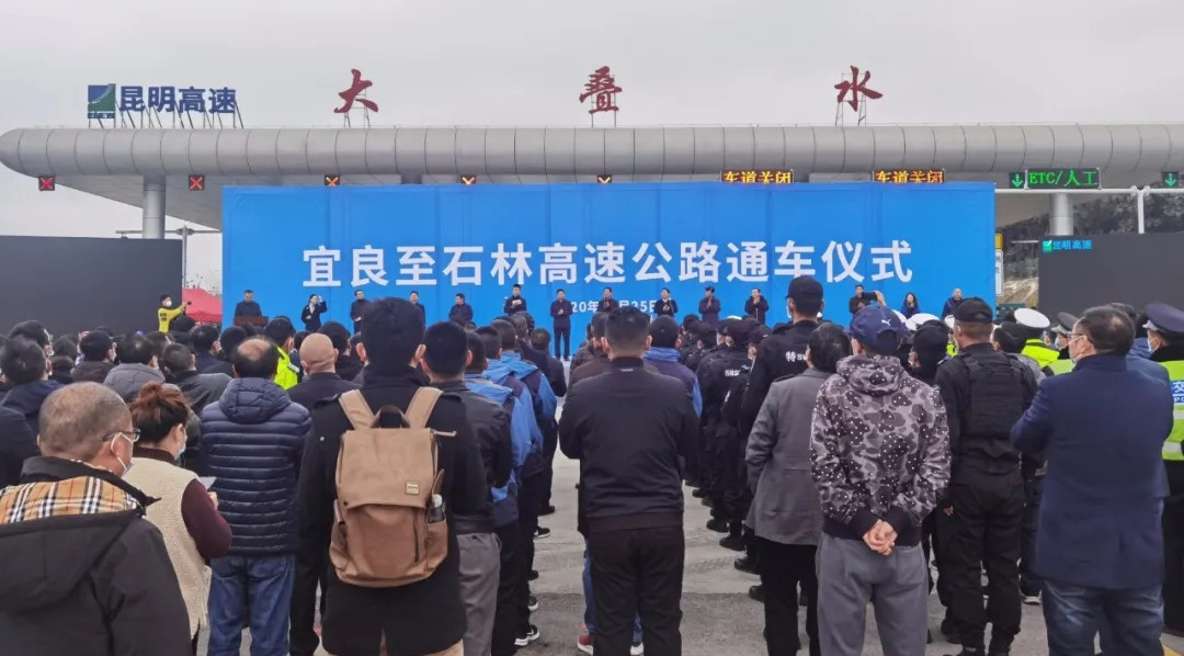 2020年12月25日上午10:30分,宜良至石林高速公路通车仪式在大叠水收费站举行,昆明市副市长高中建现场宣布宜良至石林高速公路正式通车。