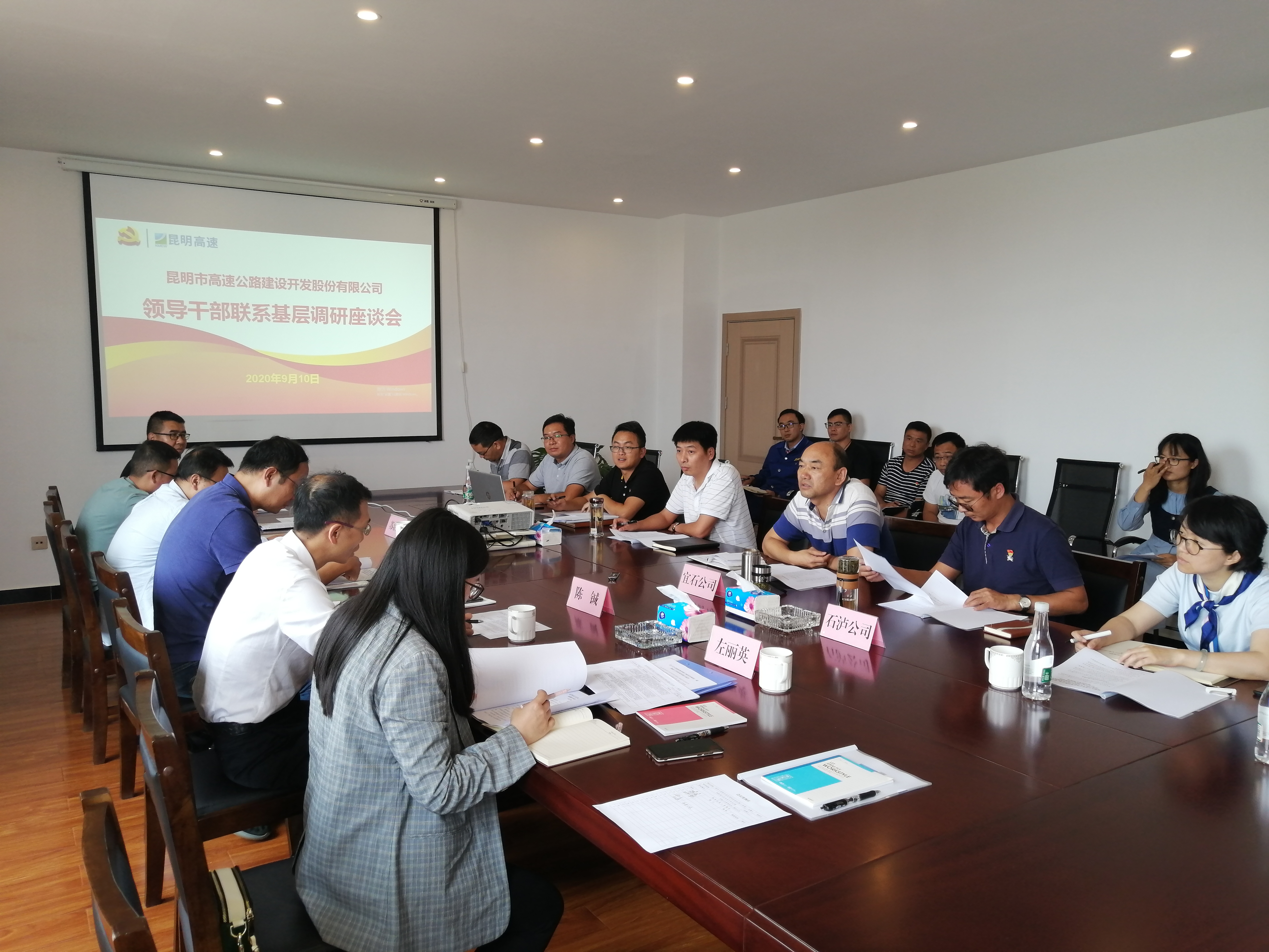 9月10日下午,昆明市高速公路党委委员、总经理陈铖,党委委员、副总经理刘德来带队到宜石、石泸公司召开领导干部联系基层调研座谈会。