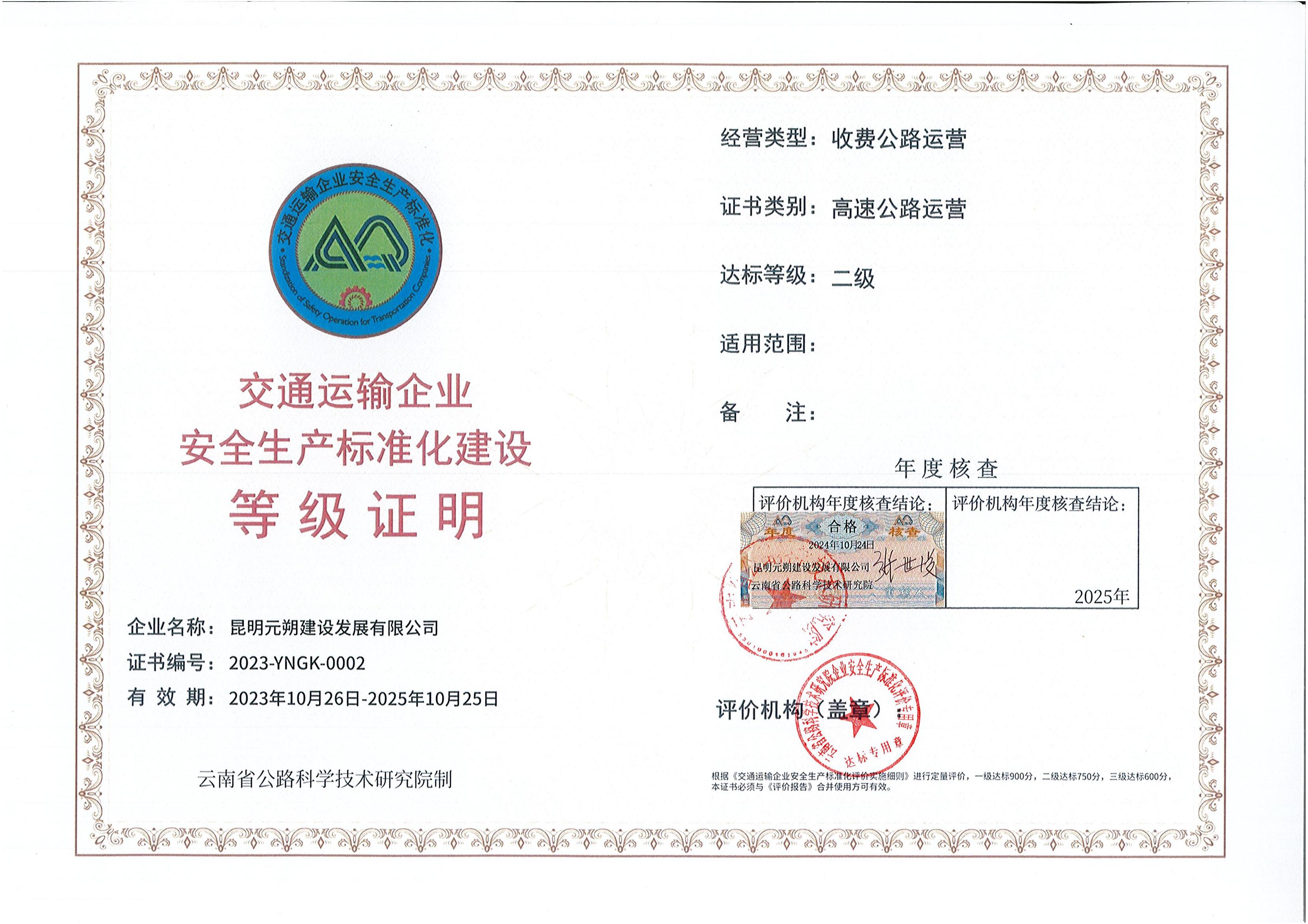 近日,304永利集团下属元朔公司经云南省公路科学研究院评审,顺利通过公路运营企业二级达标复审,评价为合格,标志着元朔公司安全生产规范化、制度化、标准...